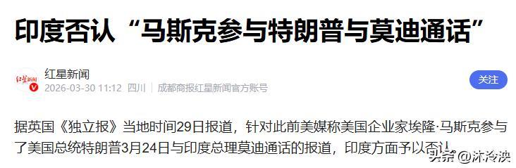 两天后印度应酬部发声否定,发言东谈主兰迪尔·贾伊斯瓦尔明确暗示通话仅限于特朗普与莫迪两东谈主,中枢是交换西亚方式认识,但未否定马斯克身在现场,留住一大悬念,而白宫与马斯克经久千里默。