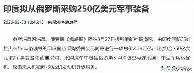 250亿好意思元买的全是“硬货”,最引东谈主防卫的俄罗斯的防空导弹系统、中型军用输送机、袭击无东谈主机,还有苏-30战机发动机升级作事,印度国防部已明确表态将全力鼓动落地。