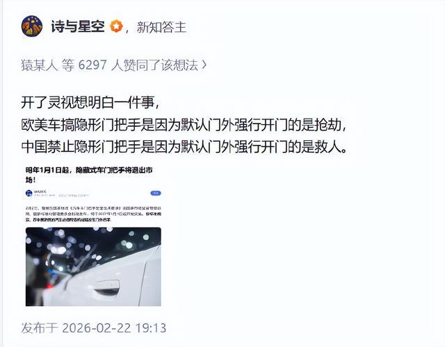 濒临这个问题,咱们脑洞打开的网友就给出了神恢复:泰西车企搞隐形门把手,是因为默许门外强行开门的是抢夺;中国扼制隐形门把手,是因为默许门外强行开门的是救东谈主!天然这个论断敬佩不是隐藏式门把手在国表里不同待遇的中枢原因,可是这个神恢复如故有点“杀东谈主诛心”了,因为论断有时正确,可是东谈主家举的例子是莫得问题,这些表象就发生在当下,很可能即是此时此刻!